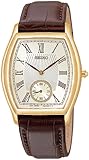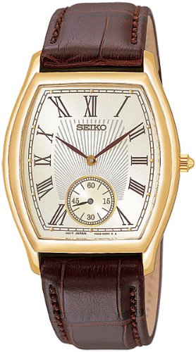 You Save : 36% Seiko Men's SRK008 Brown Leather Strap Watch This Men's brown leather strap watch has the style and practicality you desire. The gold tone stainless steel case and champagne textured dial are accented by a second hand sub dial creating a striking design. 50 meters water resistant.
